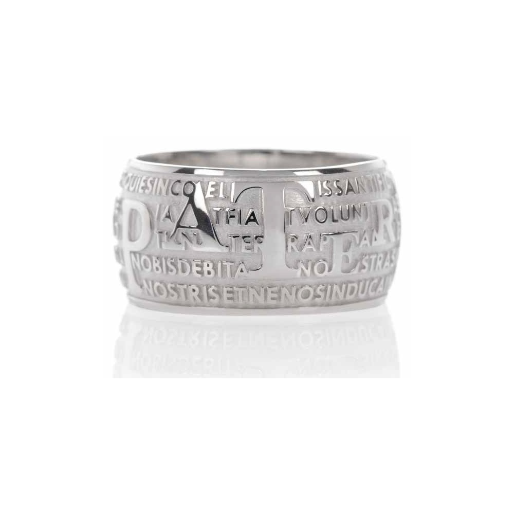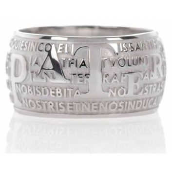 Rhodium plated 925 sterling silver AGIOS ring with Our Father prayer in Latin language