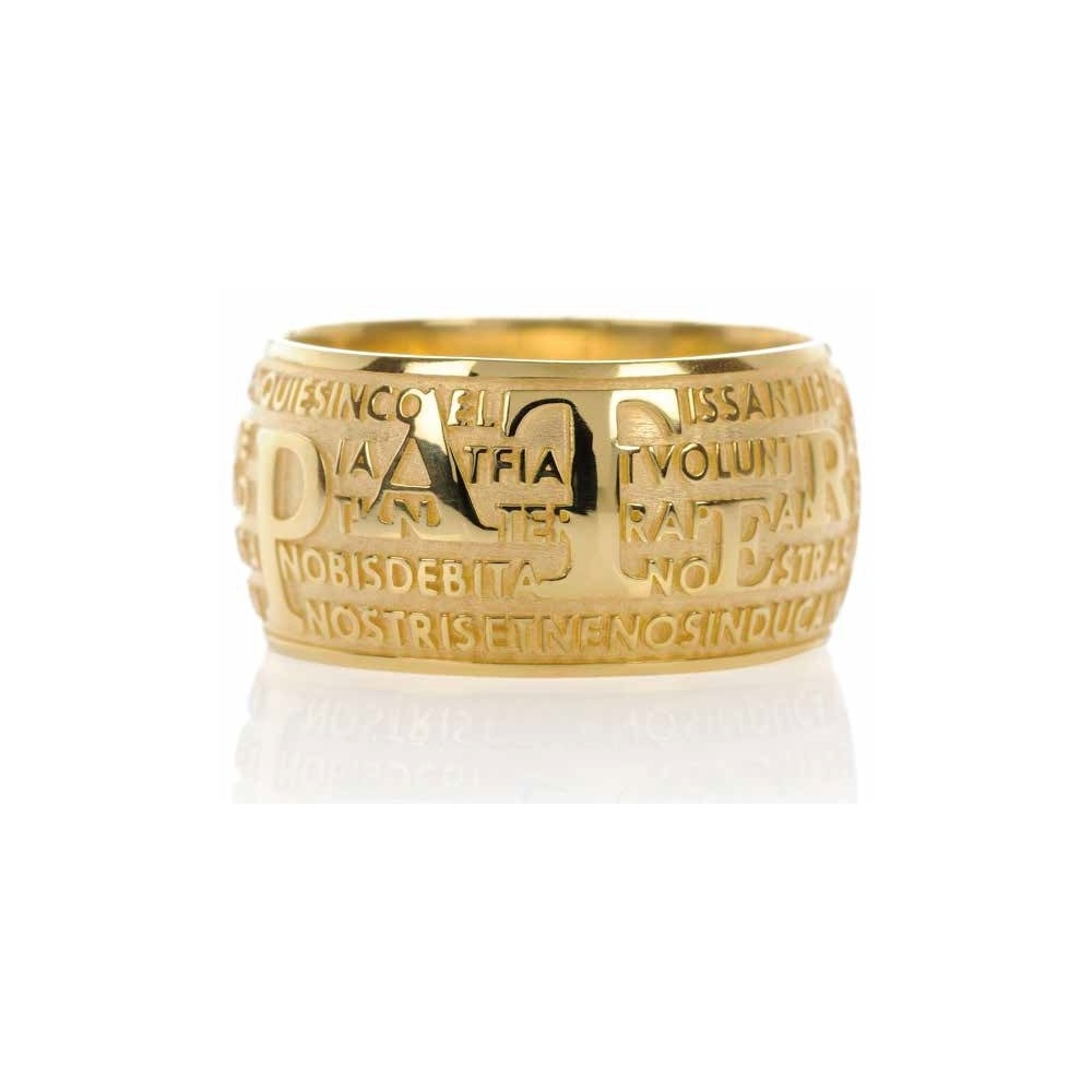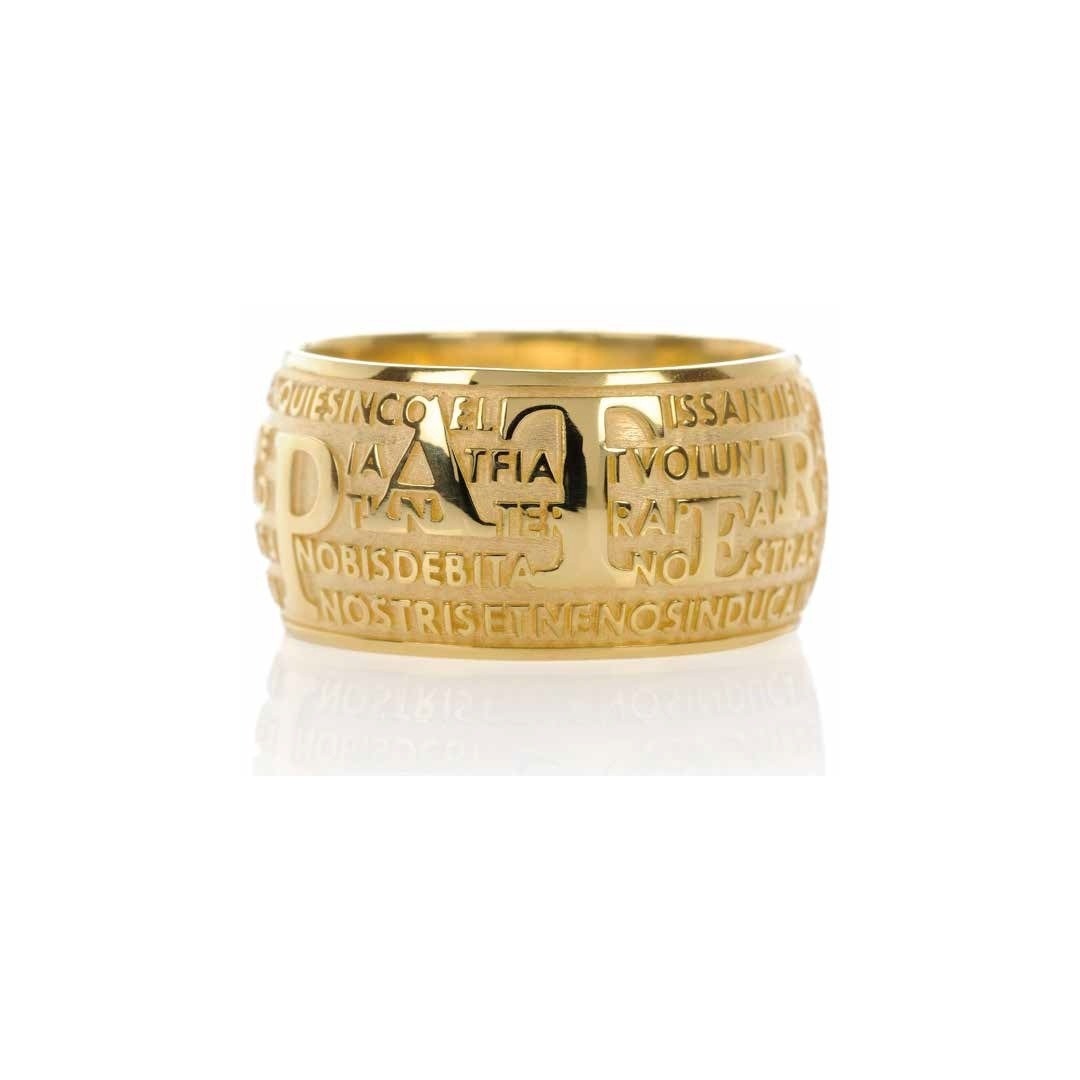 24 Kt yellow gold plated 925 sterling silver AGIOS ring with Our Father prayer in Latin language