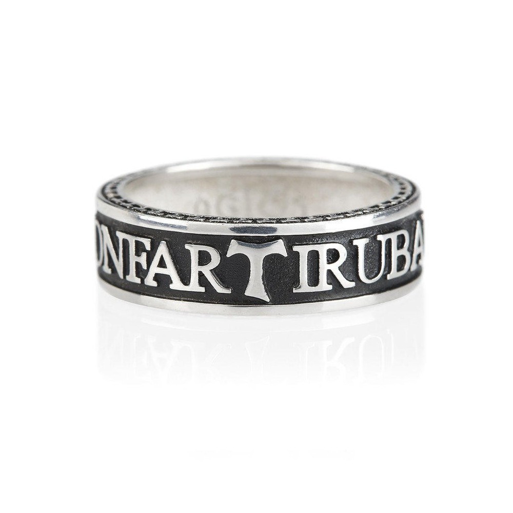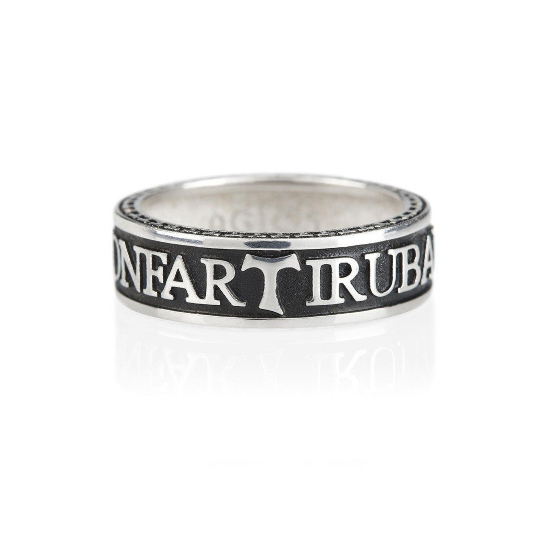 Burnished 925 sterling silver AGIOS ring with Our Father prayer in Latin language