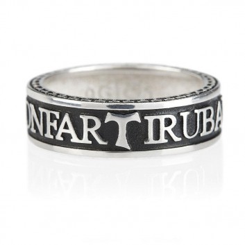 Rhodium plated 925 sterling silver AGIOS ring with Our Father prayer in Latin language