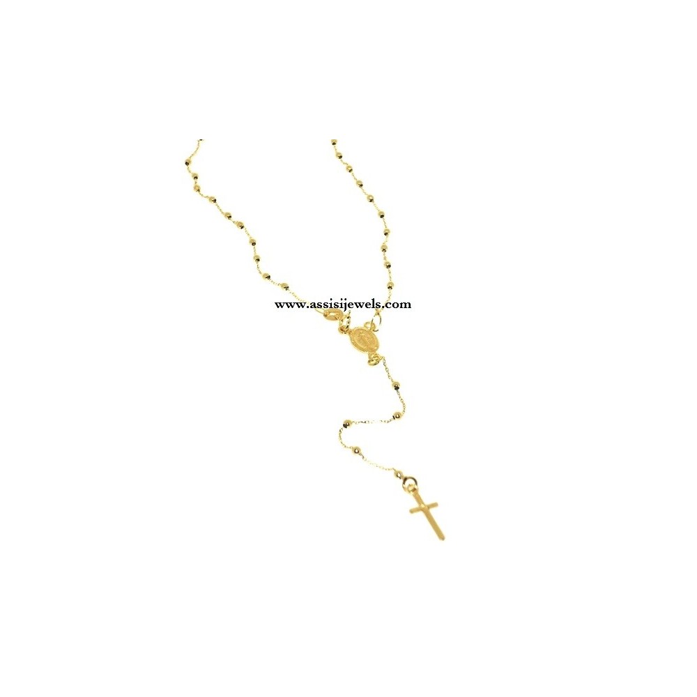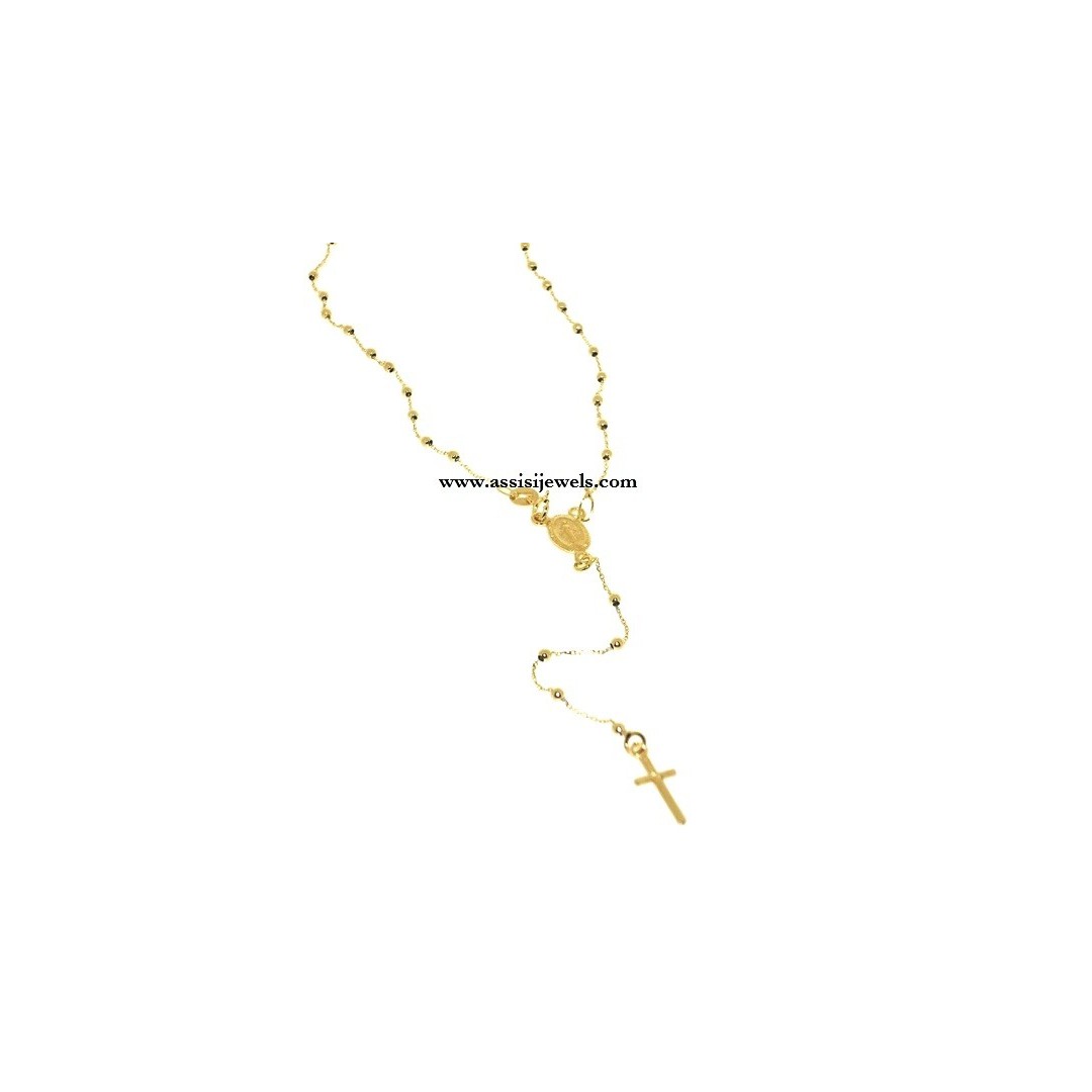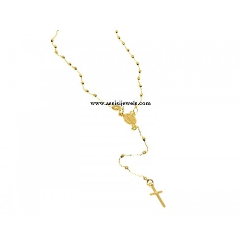18 Kt yellow gold ROSARY necklace with plain beads, Miraculous Madonna and plain cross