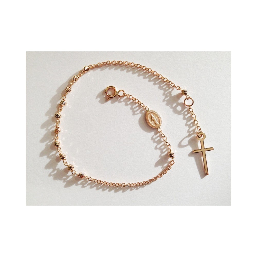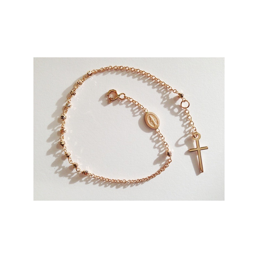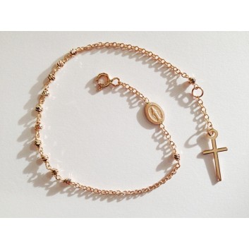 18 Kt rose gold ROSARY bracelet with diamonted beads, Miraculous Madonna and plain cross