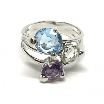 18Kt white gold ring with presiolite, amethyst and light blue topaz