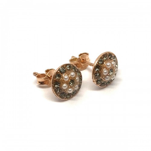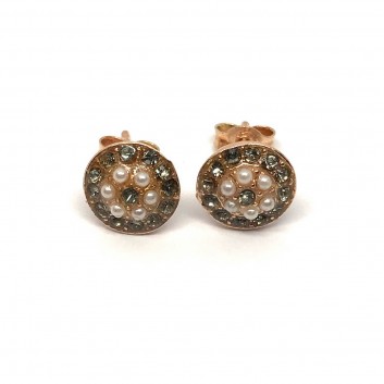 MICHELANGELO GIOIELLI 22 Kt rose gold plated 925 sterling silver MARCELLO FONTANA earrings with cubic zirconia and pearls
