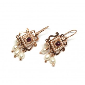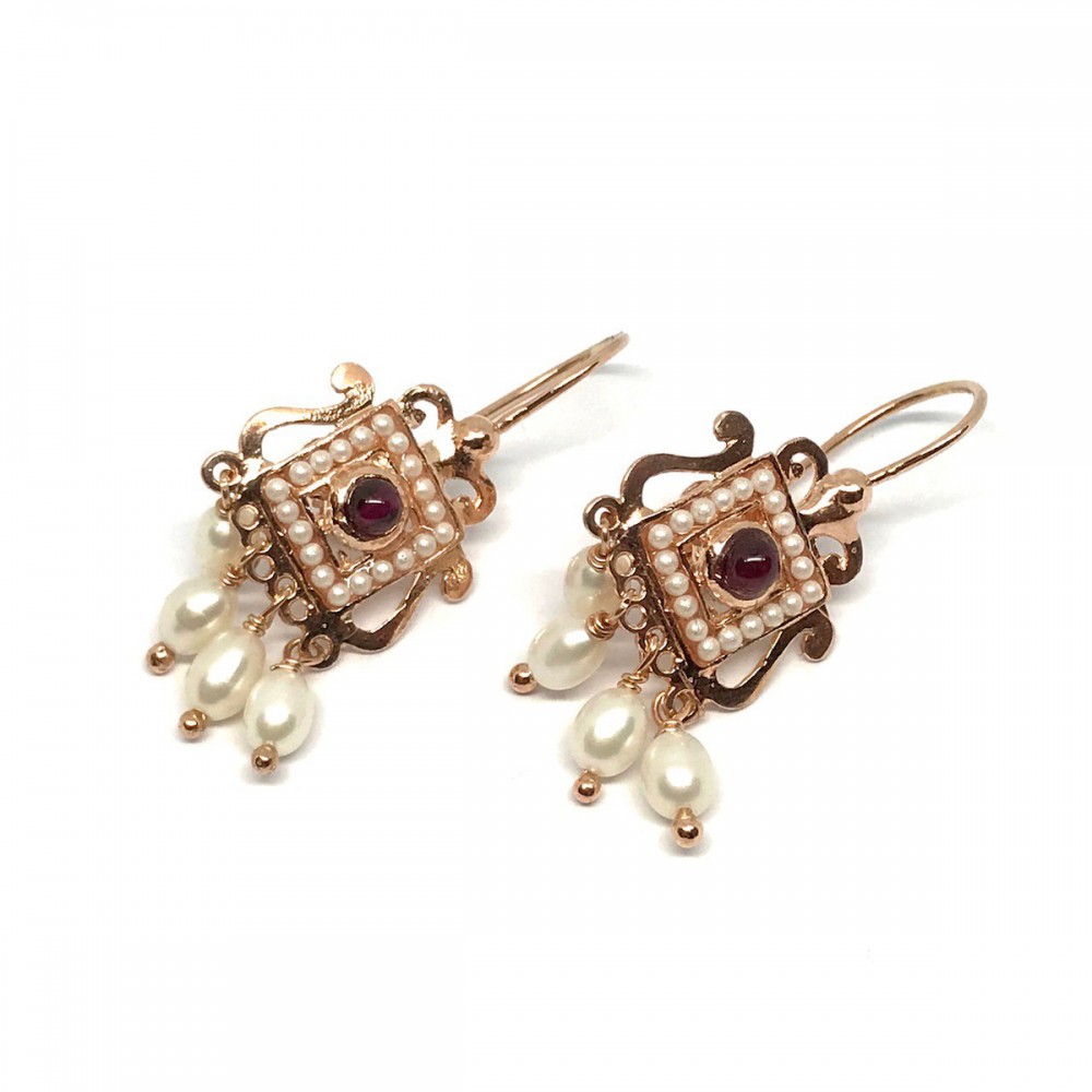 MICHELANGELO GIOIELLI 22 Kt rose gold plated 925 sterling silver MARCELLO FONTANA earrings with with cubic zirconia and pearls