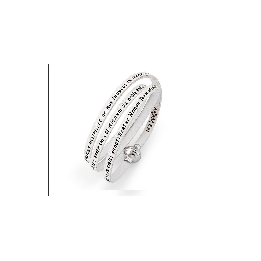 White natural lather AMEN bracelet with Our Father prayer in Latin Language
