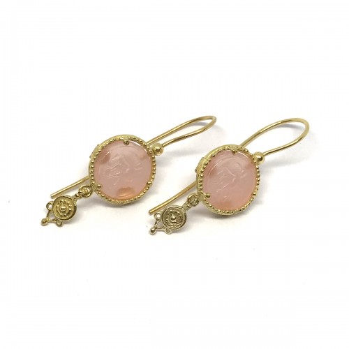 FABULA ETRUSCA 18 kt yellow gold and glass paste handmade etruscan stile earrings