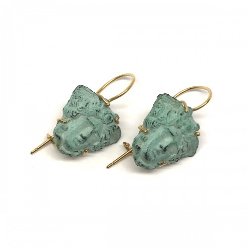 FABULA ETRUSCA 18 kt yellow gold handmade etruscan stile earrings with bronze face