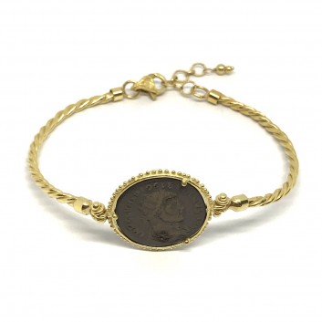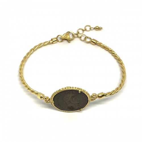 FABULA ETRUSCA 18 kt yellow gold handmade etruscan stile bracelet with 925 sterling silver coin