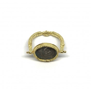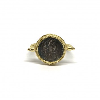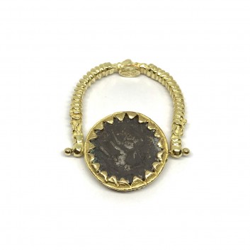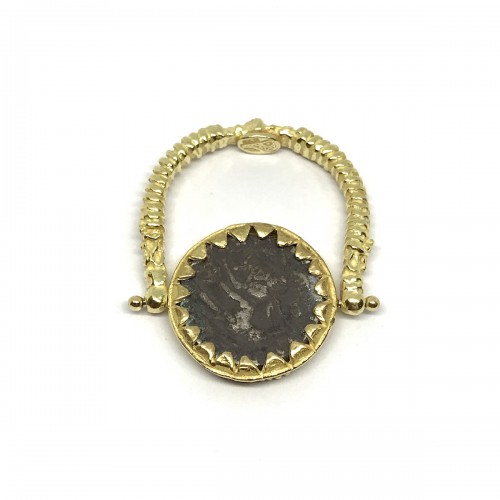 FABULA ETRUSCA 18 kt yellow gold handmade etruscan stile ring with 925 sterling silver coin