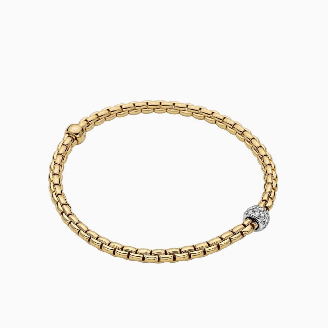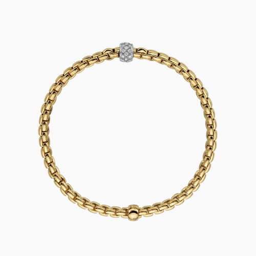 18 Kt. yellow gold Flexible bracelet with white gold rondels and diamond pavé.