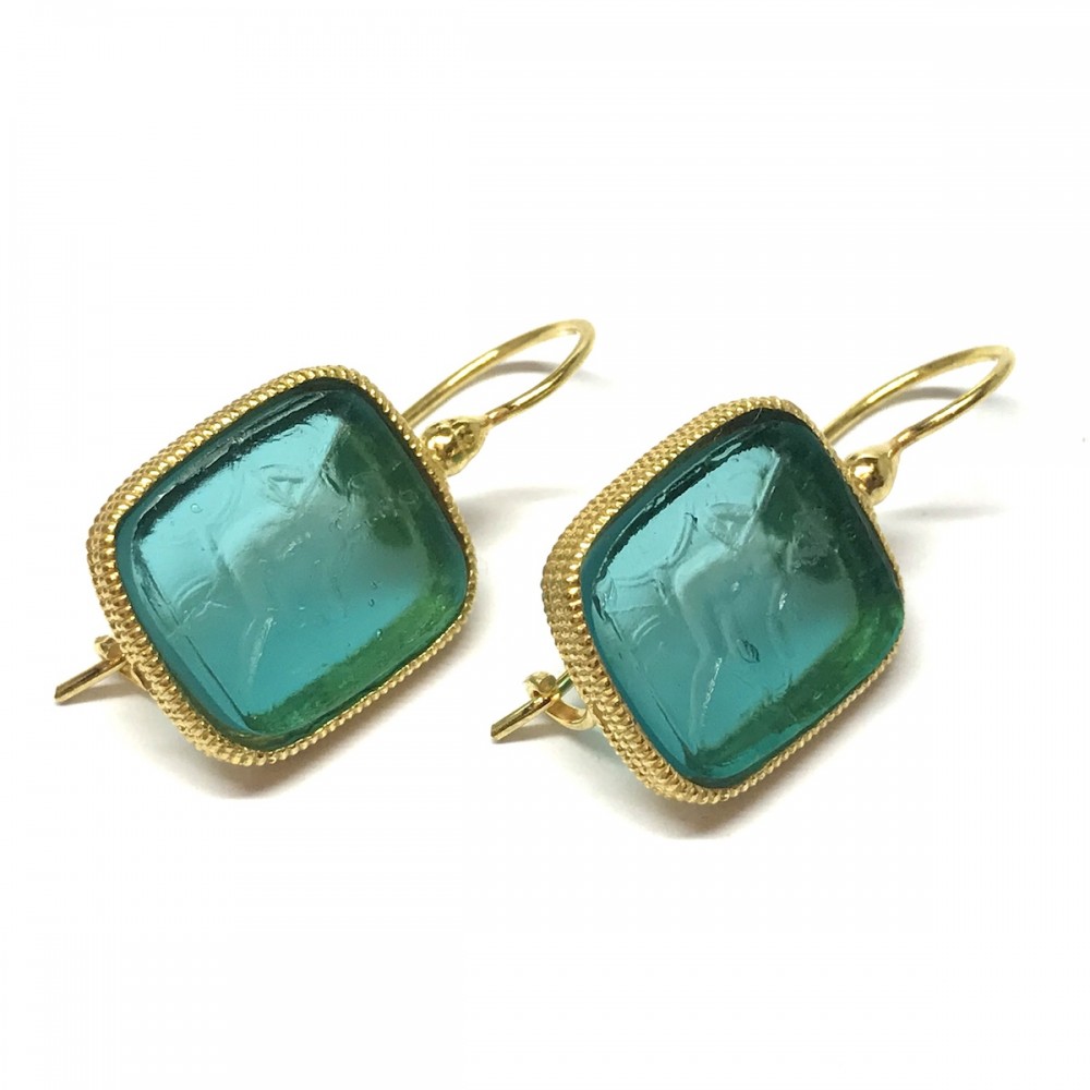 MARCELLO FONTANA 24 Kt yellow gold plated 925 sterling silver MICHELANGELO GIOIELLI earrings with glass paste intaglio