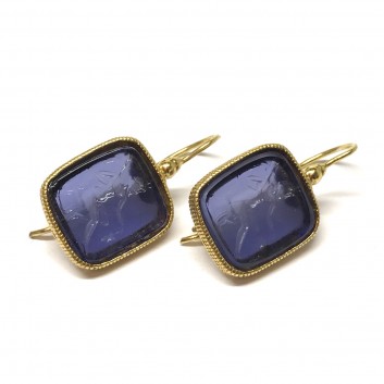 MARCELLO FONTANA 24 Kt yellow gold plated 925 sterling silver MICHELANGELO GIOIELLI earrings with glass paste intaglio