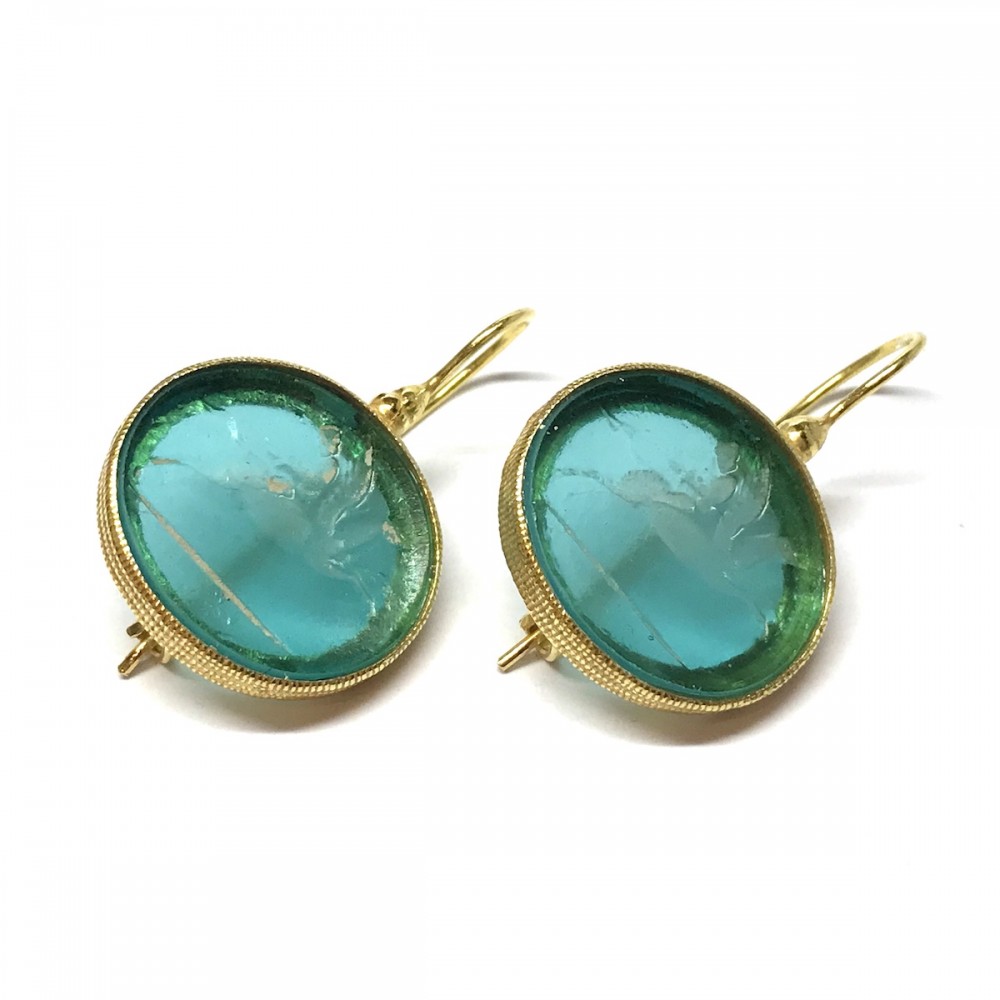 MARCELLO FONTANA 24 Kt yellow gold plated 925 sterling silver MICHELANGELO GIOIELLI earrings with glass paste intaglio