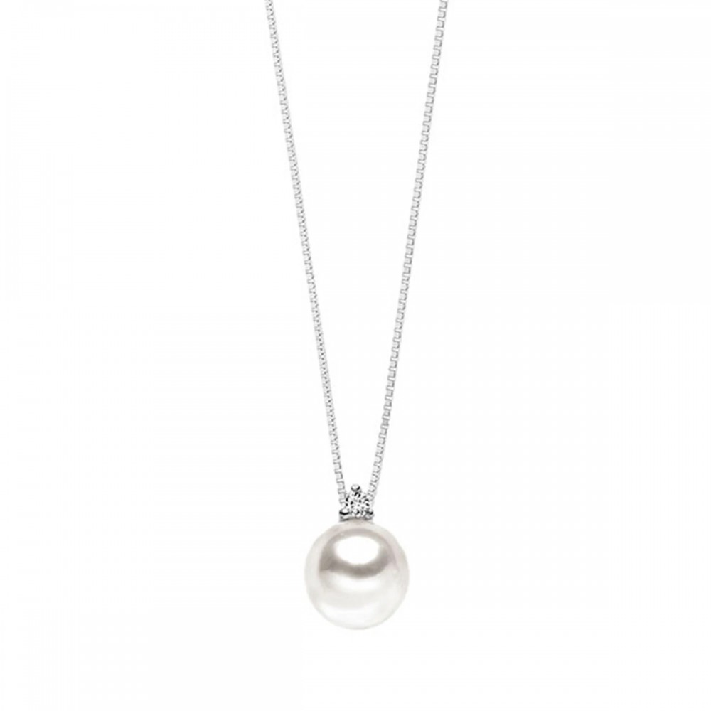 Comete necklace in 18kt white gold with cultured pearl and diamond.