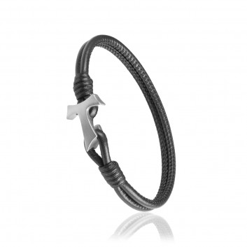 Real black leather hand made HUMILIS bracelet with satin rhodium plated 925 sterling silver Tau cross clasp