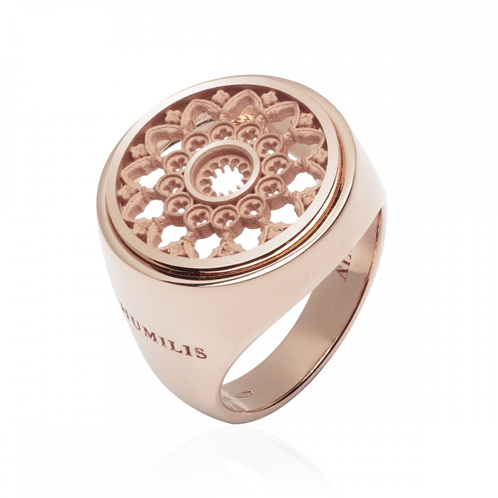 22 Kt rose gold plated 925 sterling silver HUMILIS ring that represents Florence Cathedral's rose window.