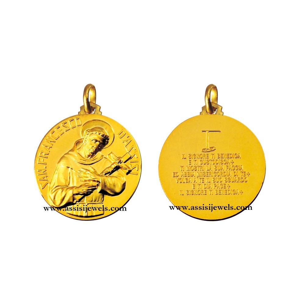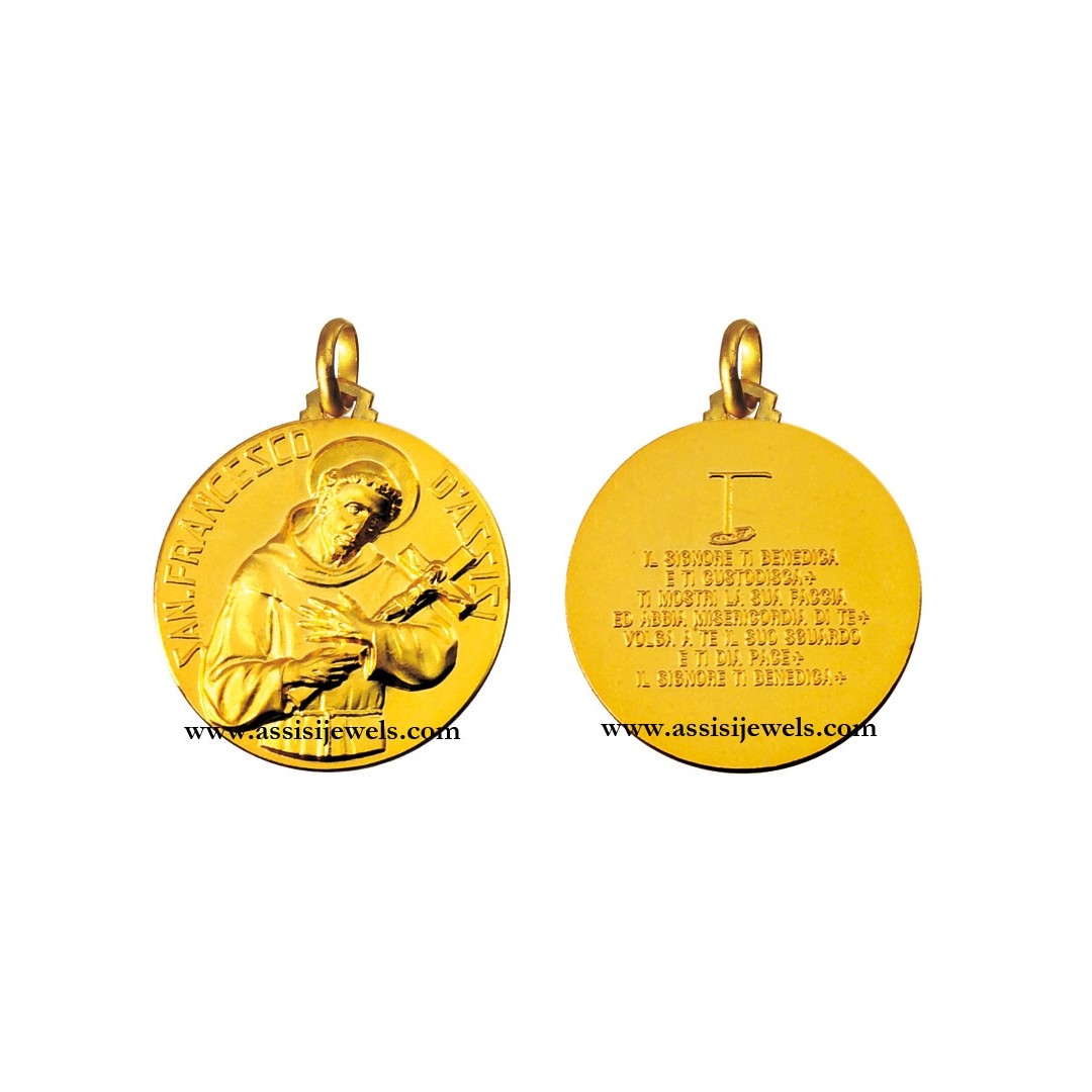 18 Kt yellow gold double sided Saint Francis of Assisi and blessing of Saint Francis of Assisi medal (select the diameter of the medal to find the corresponding price