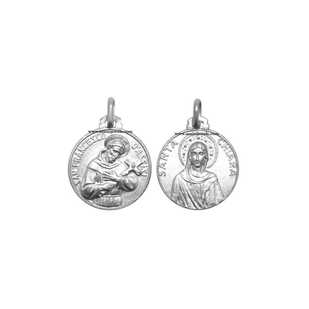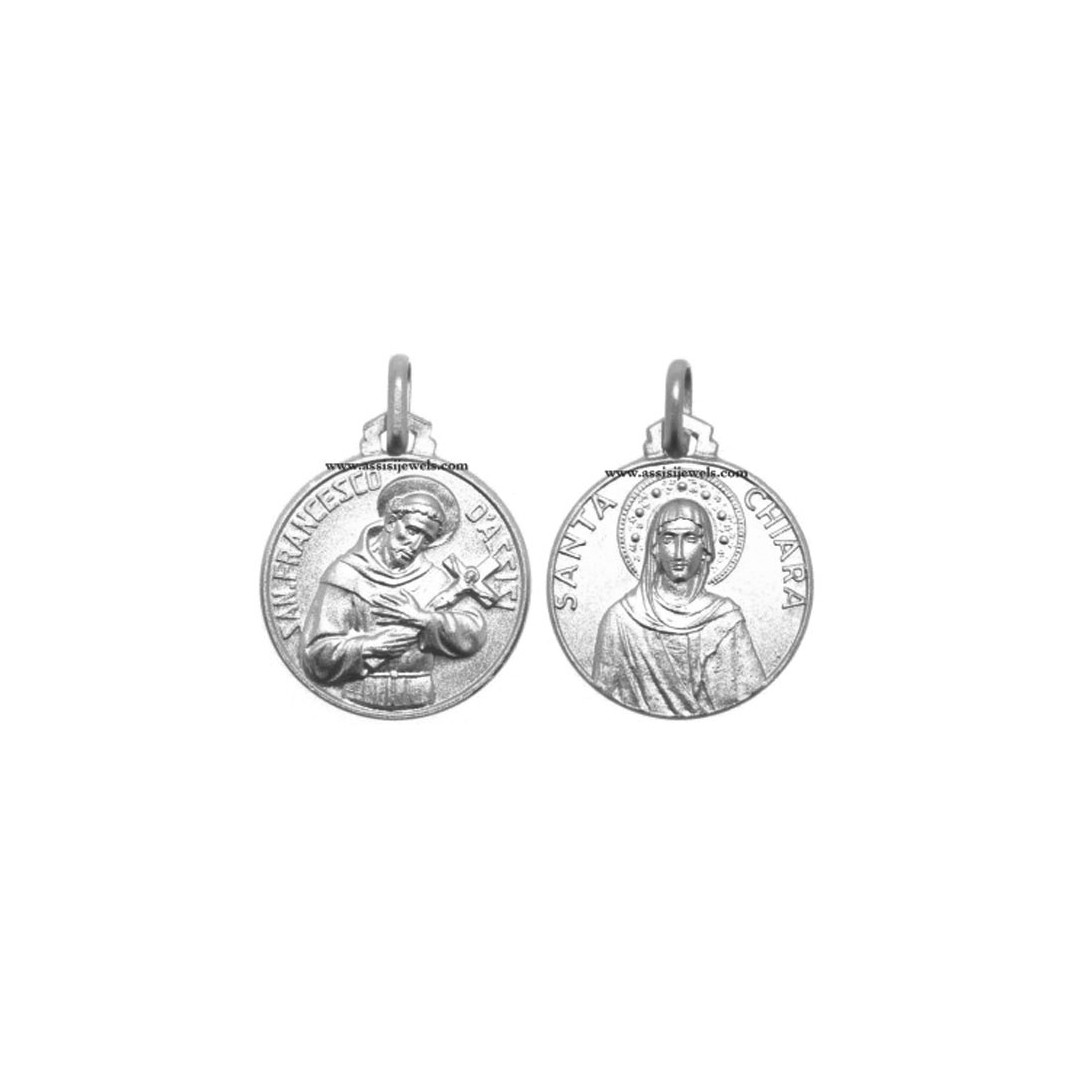 18 Kt white gold double sided Saint Francis and Saint Clare medal (select the diameter of the medal to find the corresponding price)