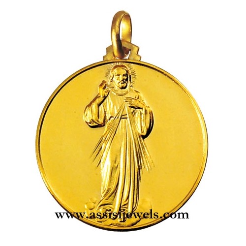 18 Kt yellow gold Merciful Christ full length medal (select the diameter of the medal to find the corresponding price)