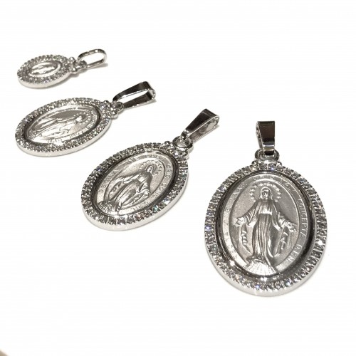925 sterling silver miraculous Madonna medal with cubic zirconia