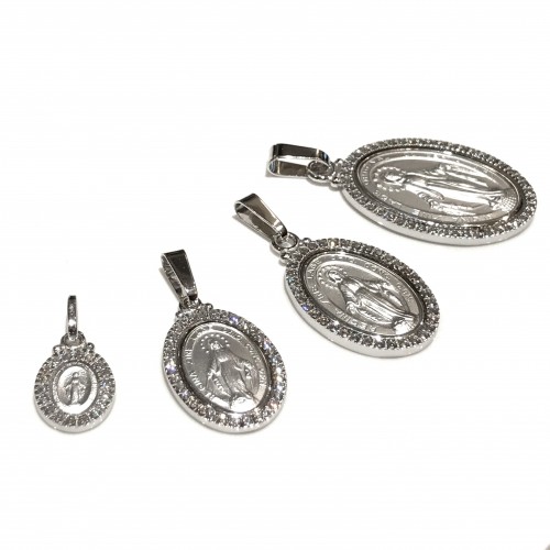 925 sterling silver miraculous Madonna medal with cubic zirconia