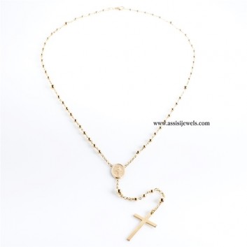 24 Kt yellow gold plated 925 sterling silver ROSARY necklace with plain beads, Miraculous Madonna and plain cross