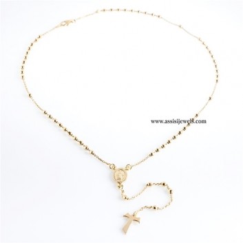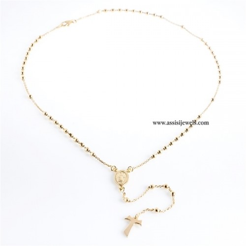 24 Kt yellow gold plated 925 sterling silver ROSARY necklace with faceted beads, Miraculous Madonna medal and plain Tau cross