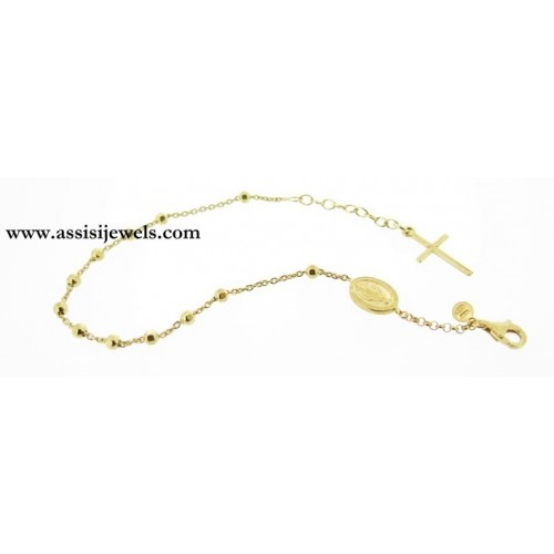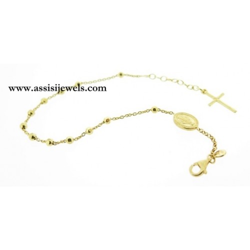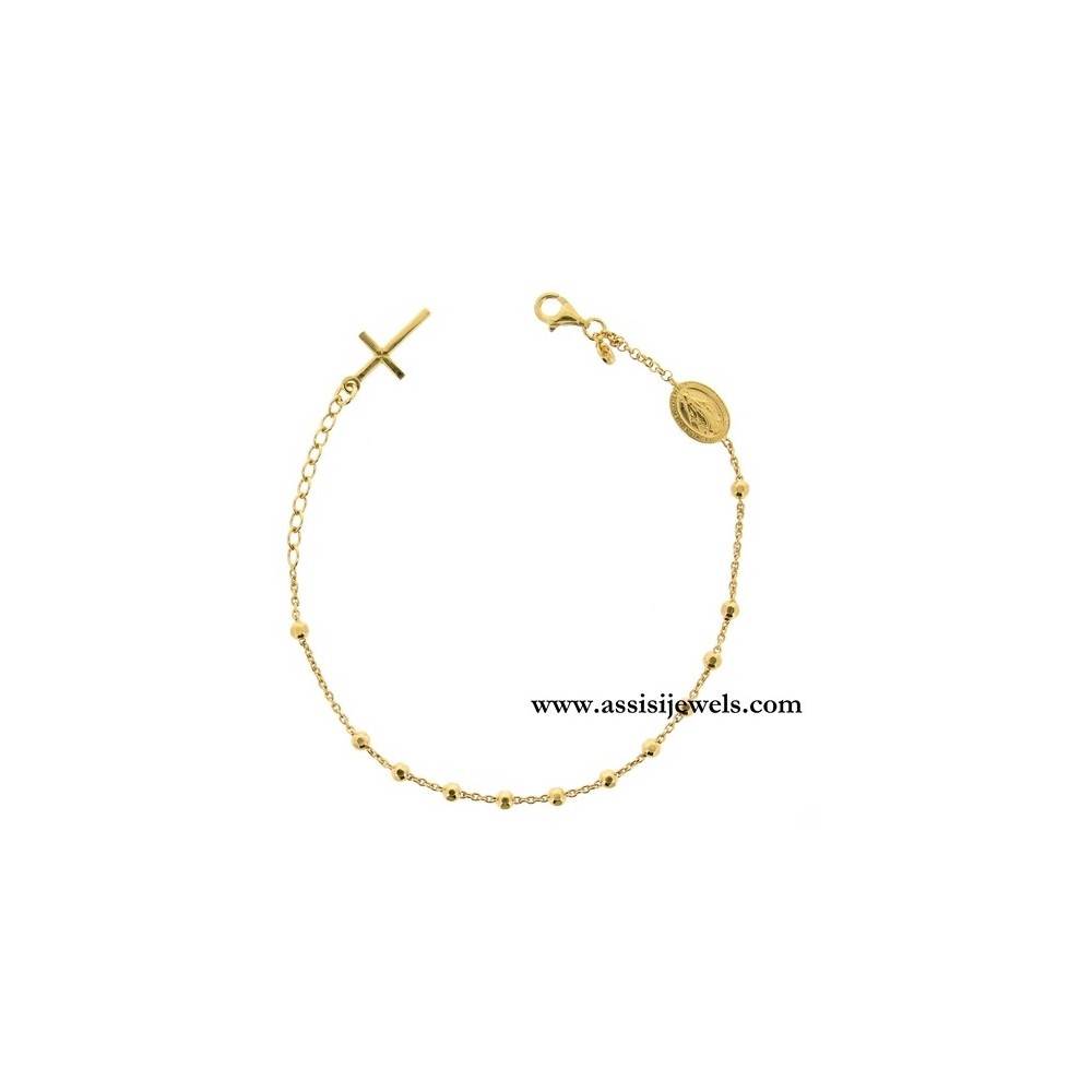 24 Kt yellow gold 925 sterling silver ROSARY bracelet with faceted beads, Miraculous Madonna medal and plain cross