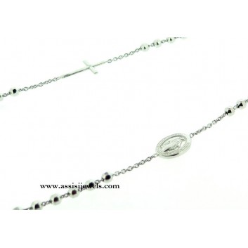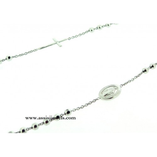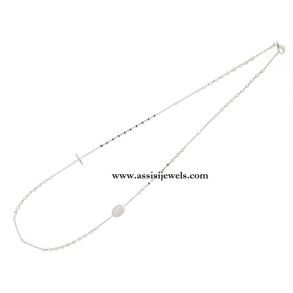 Rhodium plated 925 sterling silver ROSARY bracelet with faceted beads, Miraculous Madonna medal and plain cross
