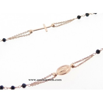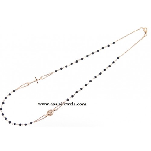 22 Kt rose gold 925 sterling silver ROSARY bracelet with faceted onix beads, Miraculous Madonna medal and plain cross