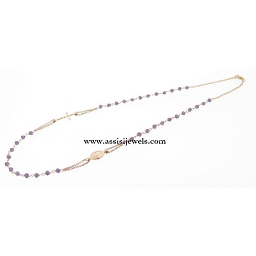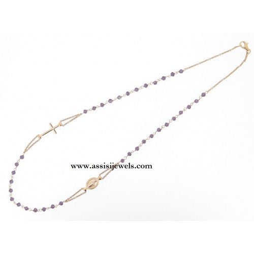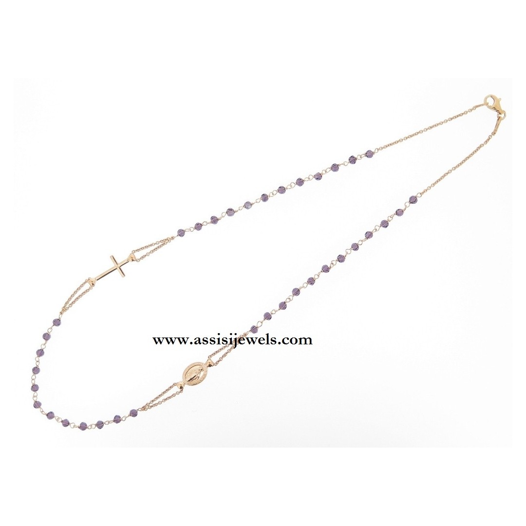 22 Kt rose gold 925 sterling silver ROSARY bracelet with faceted amethyst crystal beads, Miraculous Madonna medal and plain cross