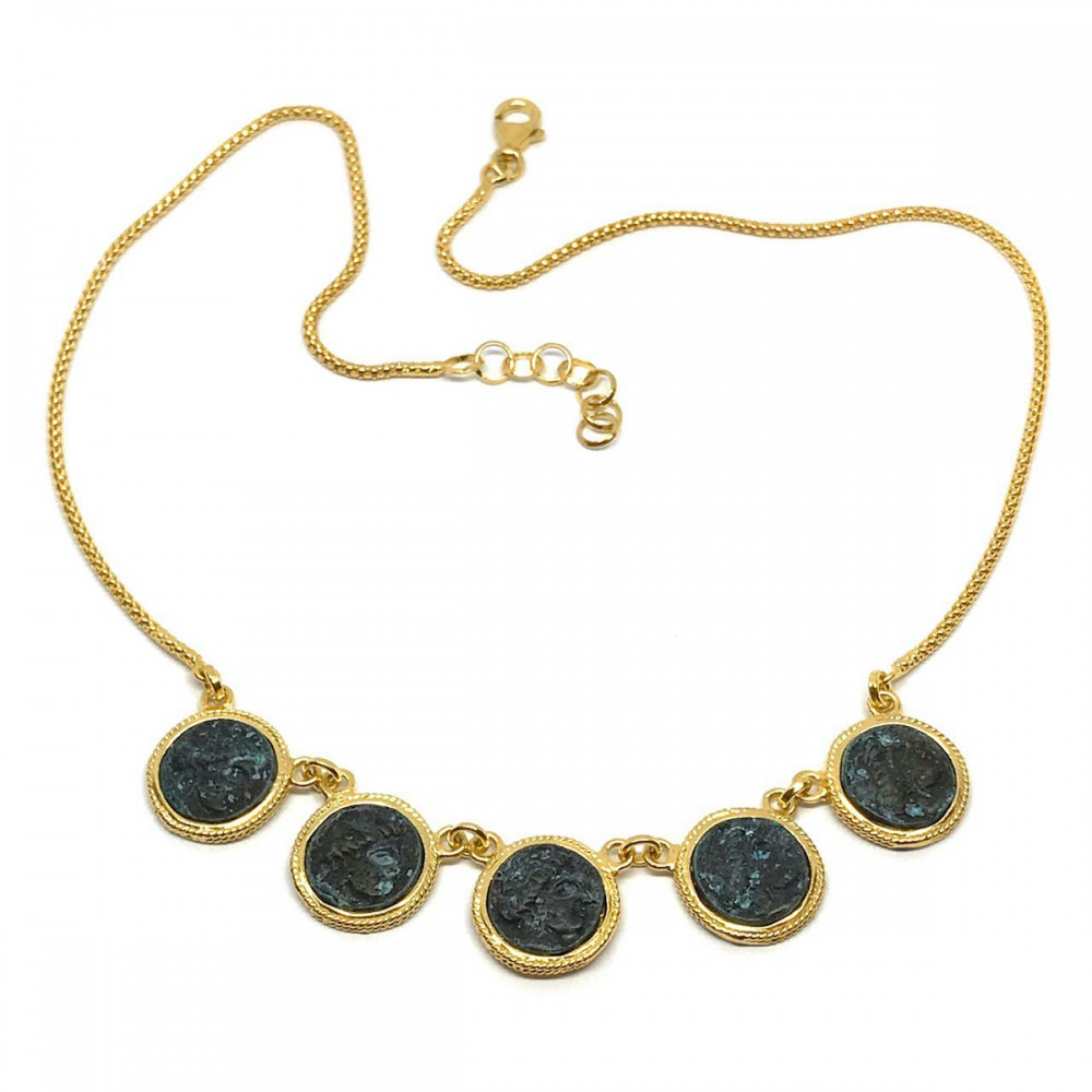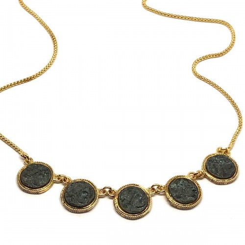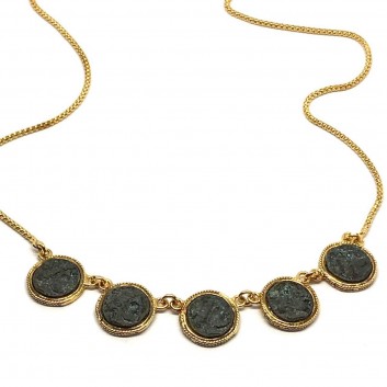 MARCELLO FONTANA 24 Kt yellow gold plated 925 sterling silver MICHELANGELO GIOIELLI necklace with bronze coins