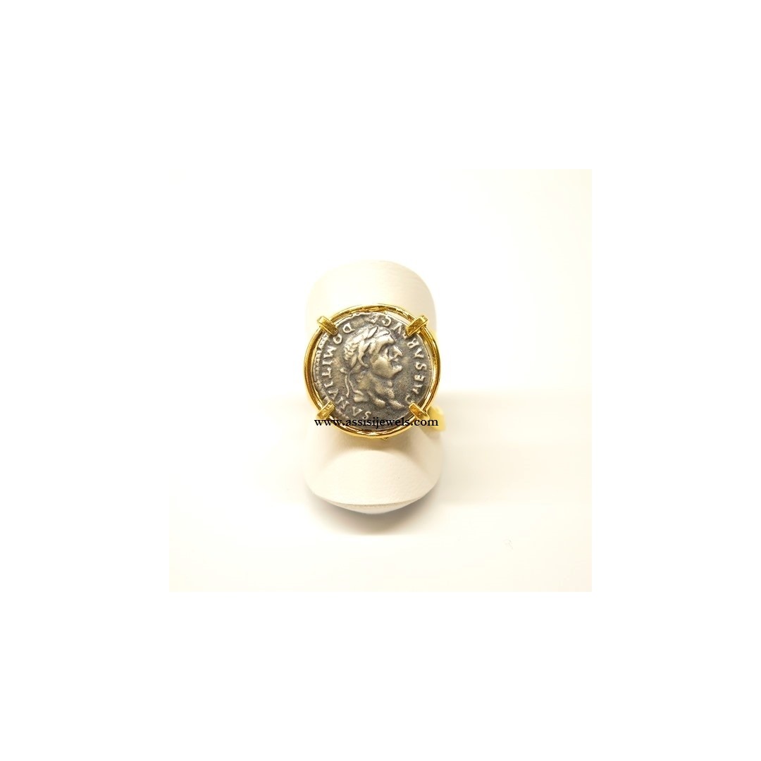 MARCELLO FONTANA 24 Kt yellow gold plated 925 sterling silver MICHELANGELO GIOIELLI ring with bronze coin