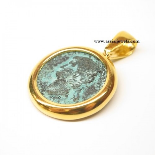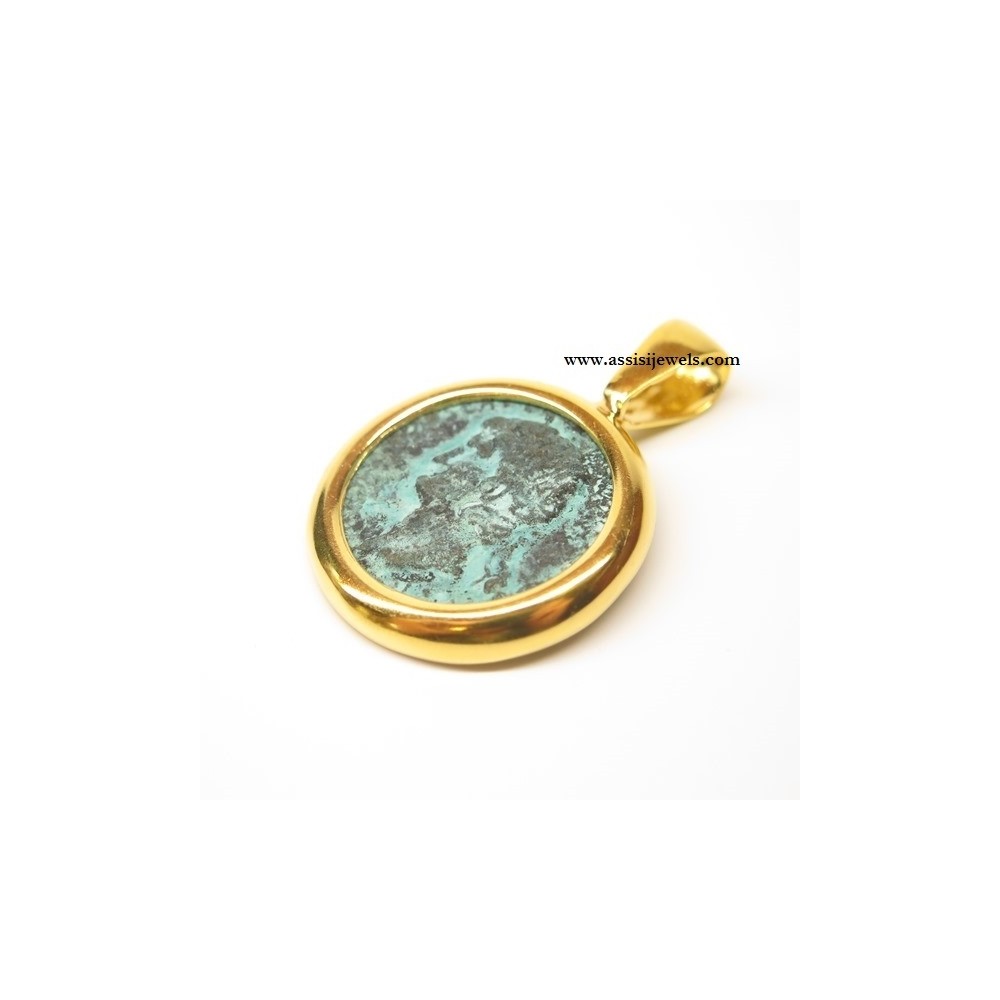 MARCELLO FONTANA 24 Kt yellow gold plated 925 sterling silver MICHELANGELO GIOIELLI pendant with bronze coin