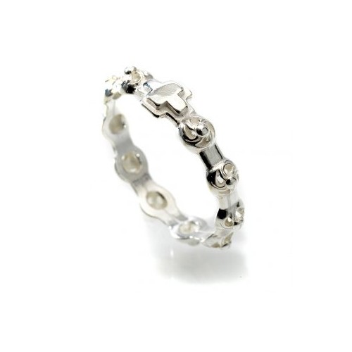Rhodium plated 925 silver Saint Rita ROSARY ring with rose prayer beads