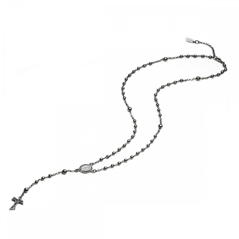 Burnished 925 sterling silver ROSARY necklace, with double-sided medal depicting the Miraculous Virgin and Saint Francis with the wolf, Tau cross pendant.