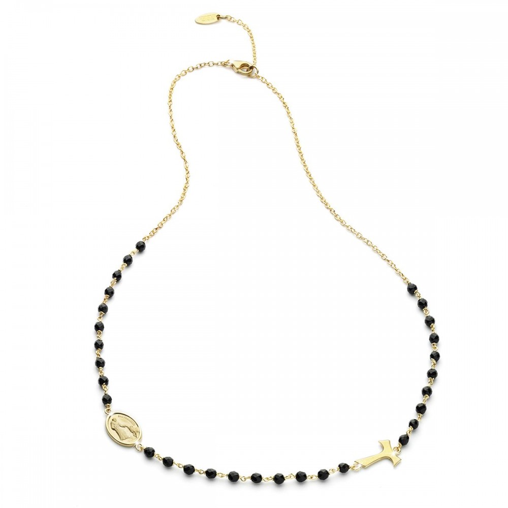 24kt yellow gold plated 925 sterling silver ROSARY necklaces, with double-sided medal depicting the Miraculous Virgin and Saint Francis with the wolf, plain Tau cross.