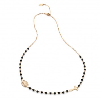22kt rose gold plated 925 sterling silver ROSARY necklaces, with double-sided medal depicting the Miraculous Virgin and Saint Francis with the wolf, plain Tau cross.