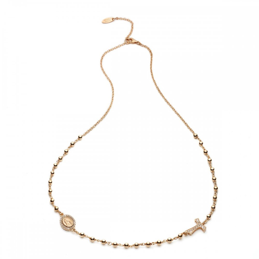 22kt rose gold plated 925 sterling silver ROSARY necklace, with double-sided medal depicting the Miraculous Virgin and Saint Francis with the wolf, Tau cross.