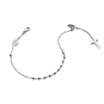 Rhodium plated 925 sterling silver ROSARY bracelet with beads, Saint Francis with the wolf medal and plain cross