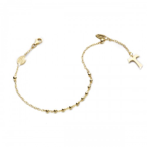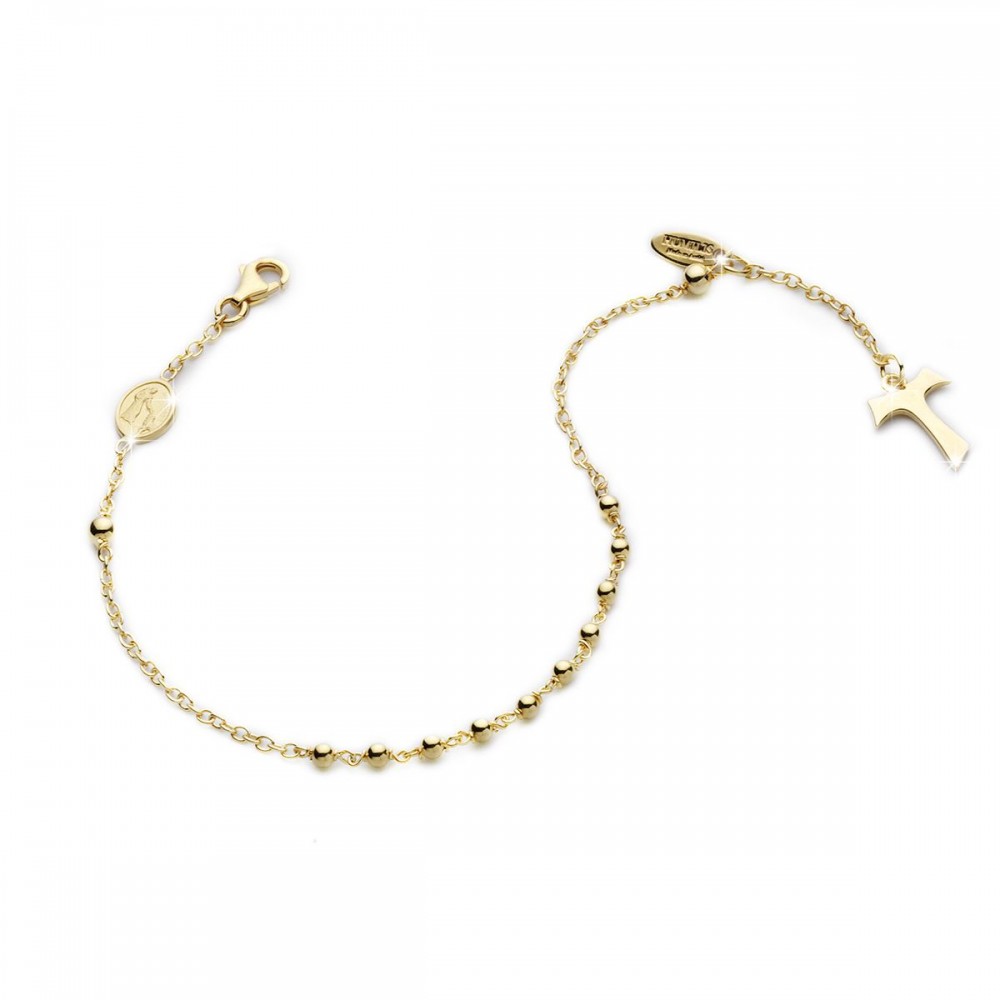 24kt yellow gold plated 925 sterling silver ROSARY bracelet with beads, Saint Francis and the wolf medal and plain cross
