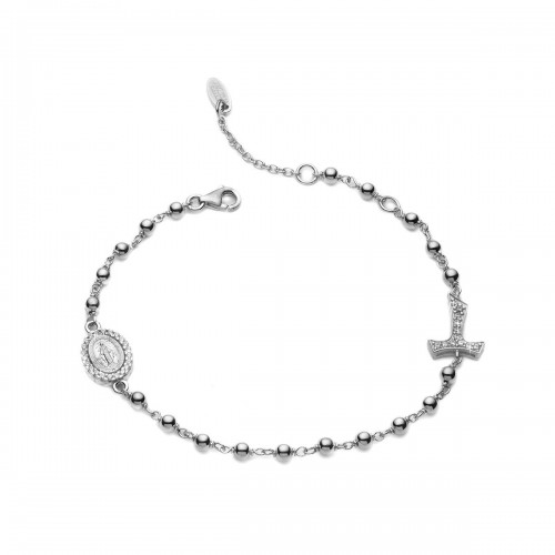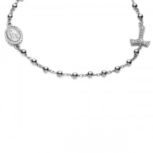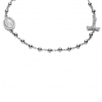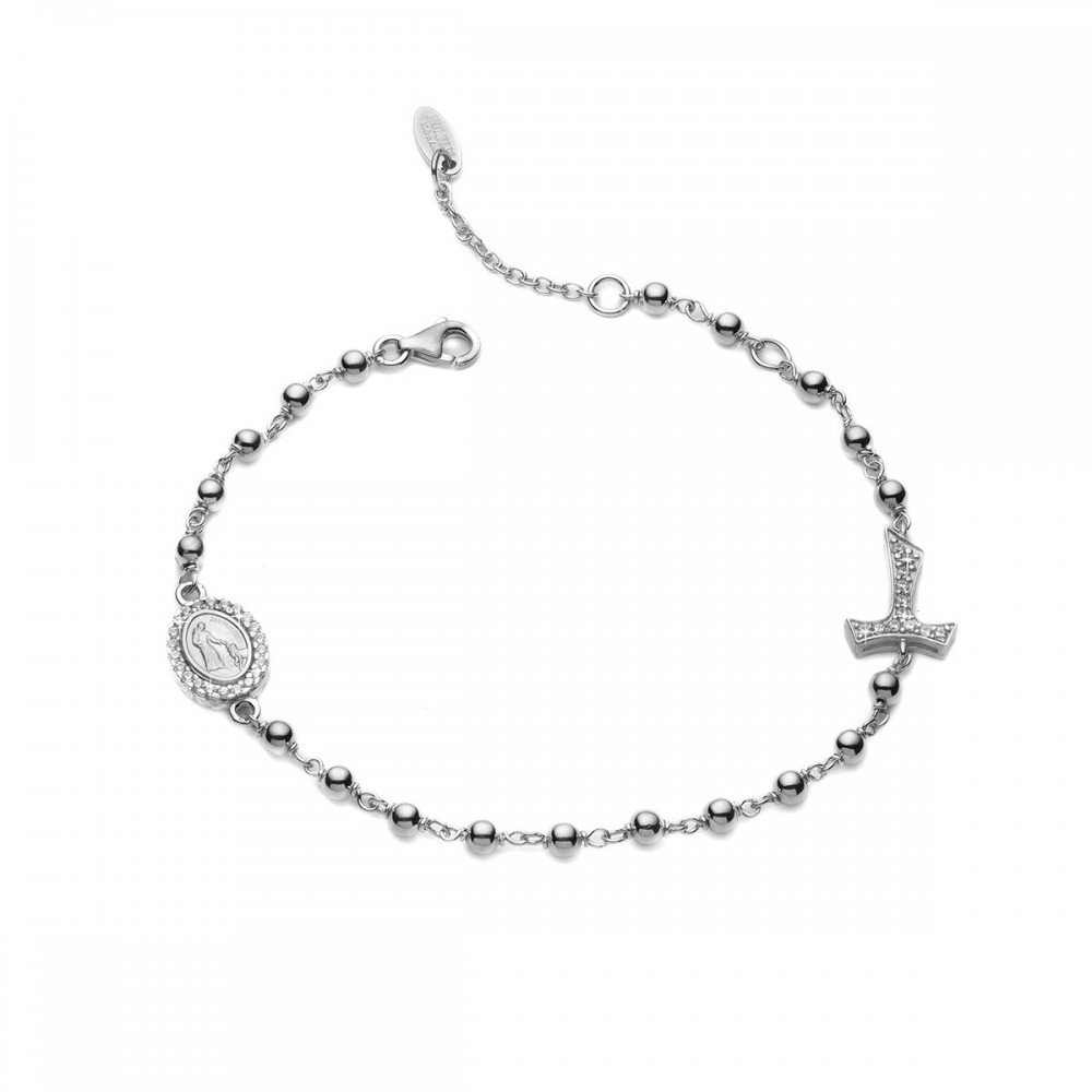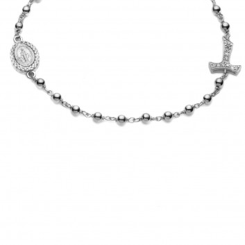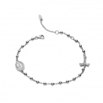 Rhodium plated 925 sterling silver ROSARY bracelet, with Tau cross and double-sided medal depicting the Miraculous Virgin and Saint Francis with the wolf.
