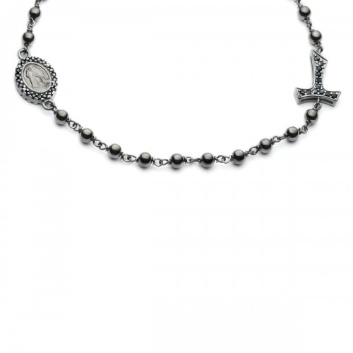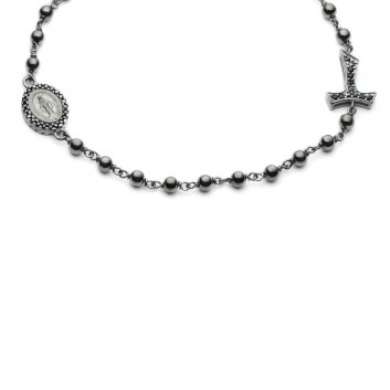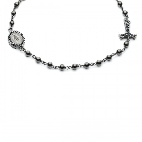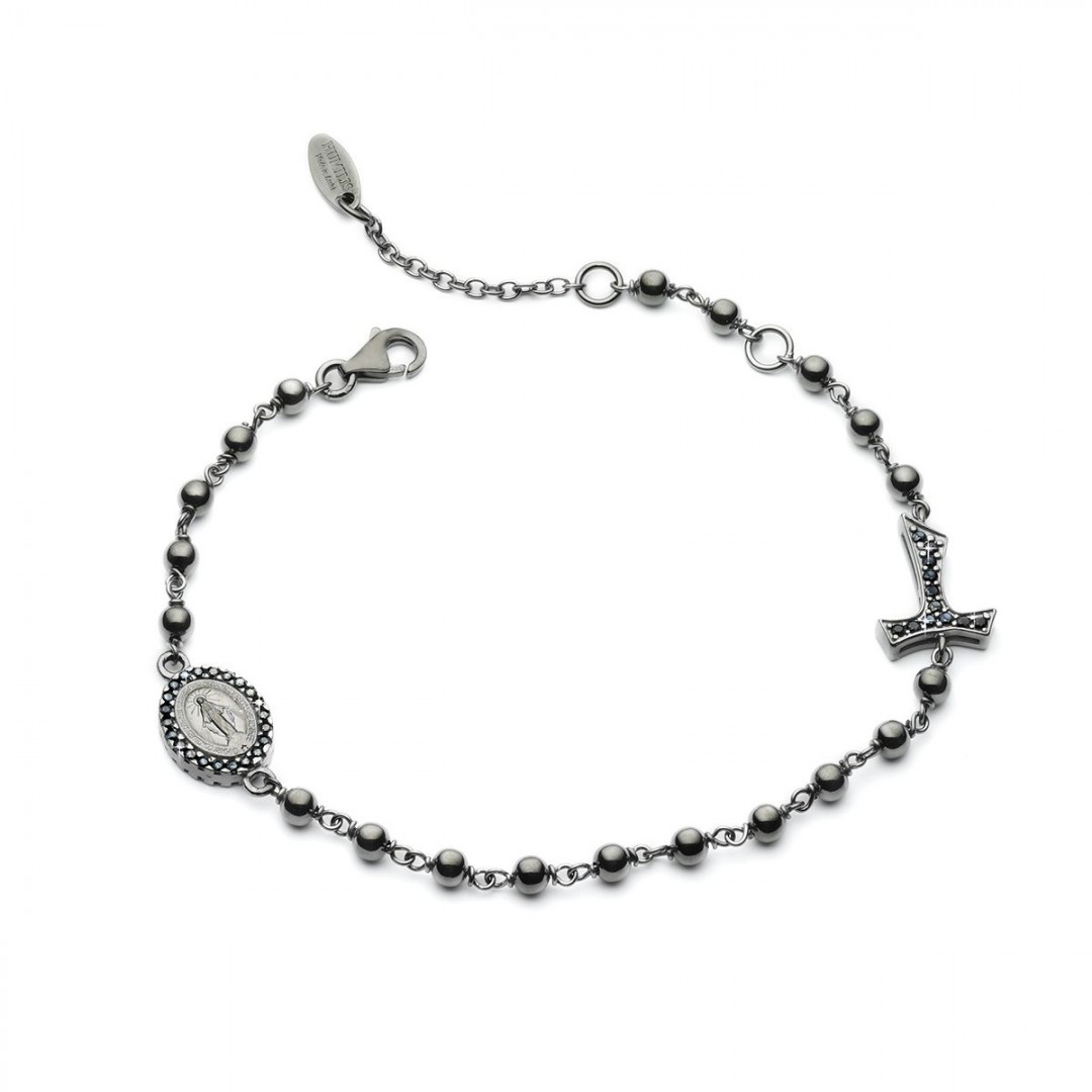 Burnished 925 sterling silver ROSARY bracelet, with Tau cross and double-sided medal depicting the Miraculous Virgin and Saint Francis with the wolf.