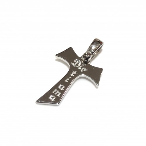 18 Kt white gold Saint Francis of Assisi TAU cross that say "God loves you"