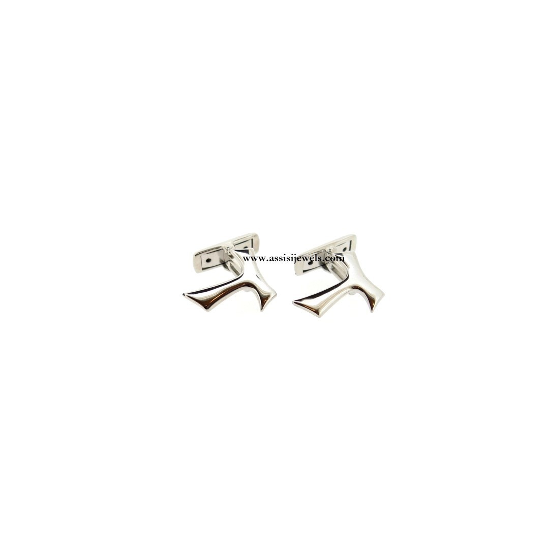 Rhodium plated 925 sterling silver Saint Francis of Assisi TAU cross cufflinks