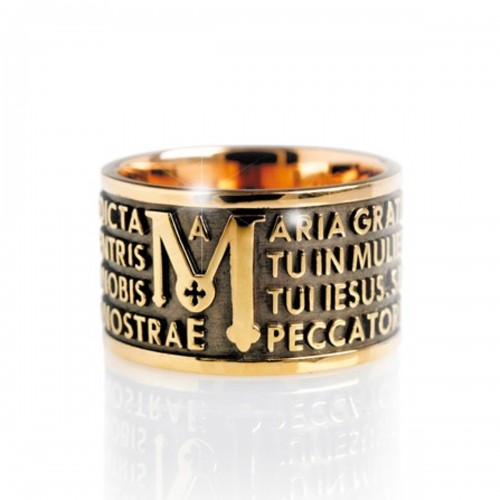 Bronzed 925 sterling silver TUAM ring with Hail Mary prayer in Latin language