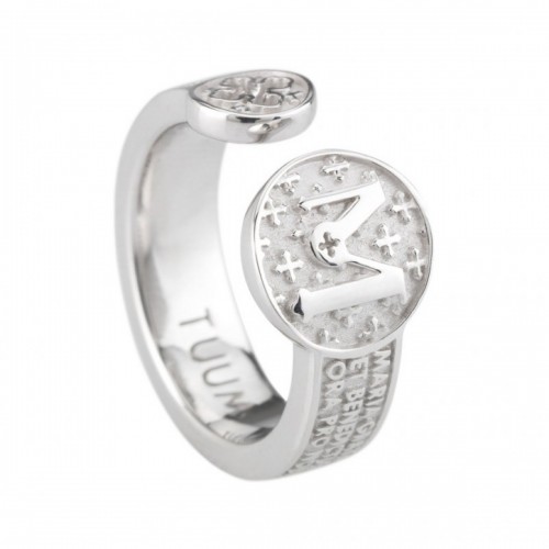 Rhodium plated 925 sterling silver TUUM INFINITUUM ring with Hail Mary prayer in Latin language