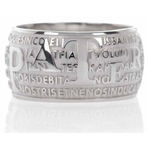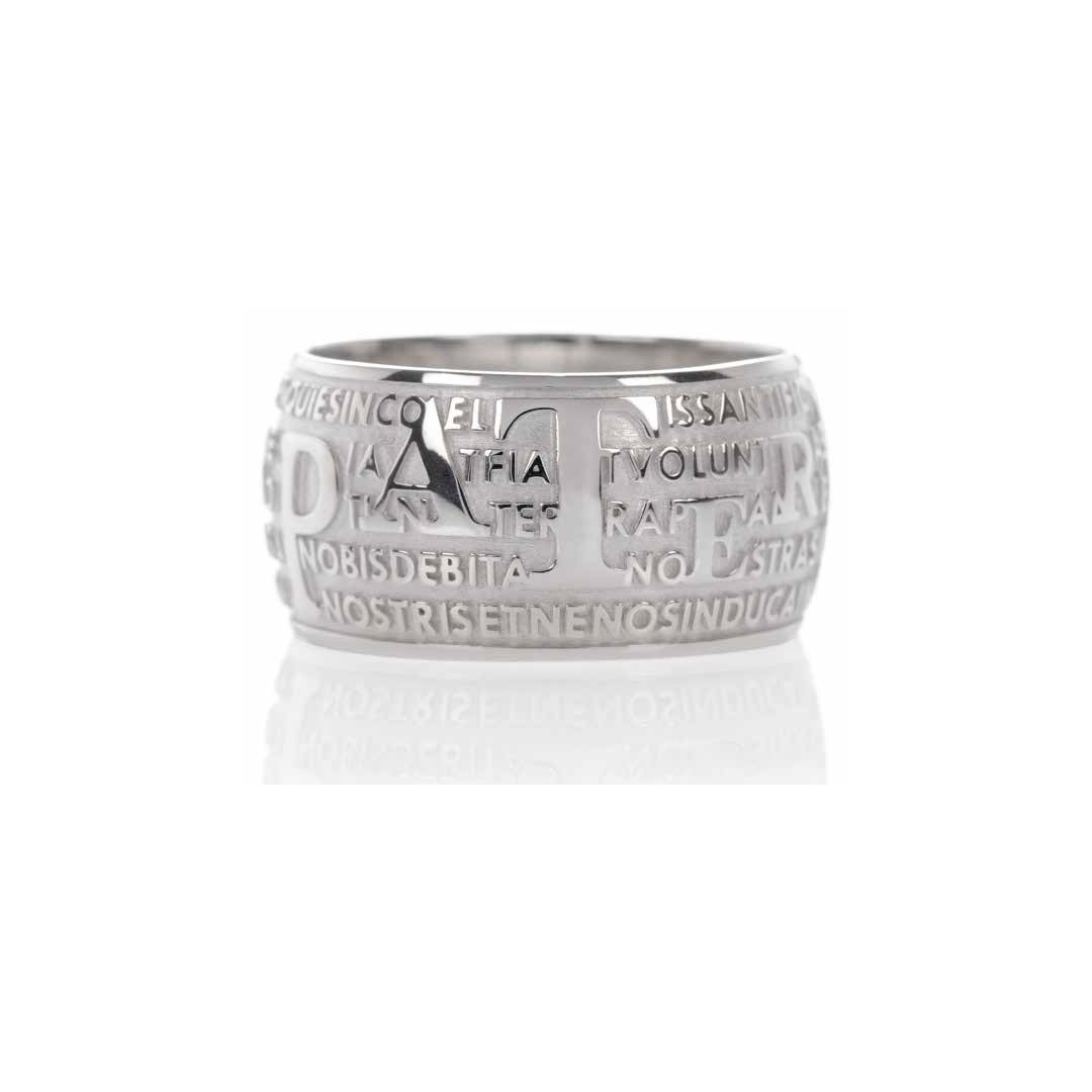 Anello AGIOS in argento 925 rodiato con preghiera del Padre Nostro in lingua latina