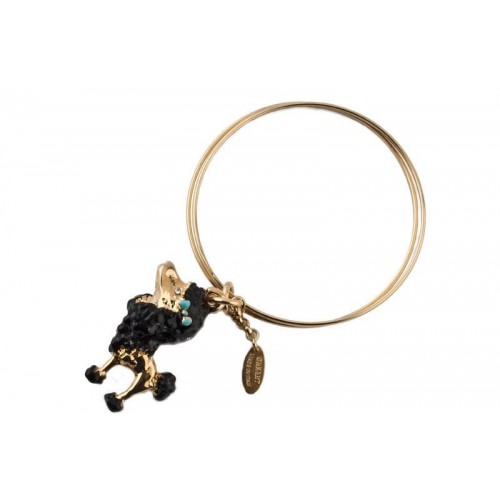 Bracciale CREART in ottone placcato oro giallo 24 Kt con cham cane barboncino nero smaltato